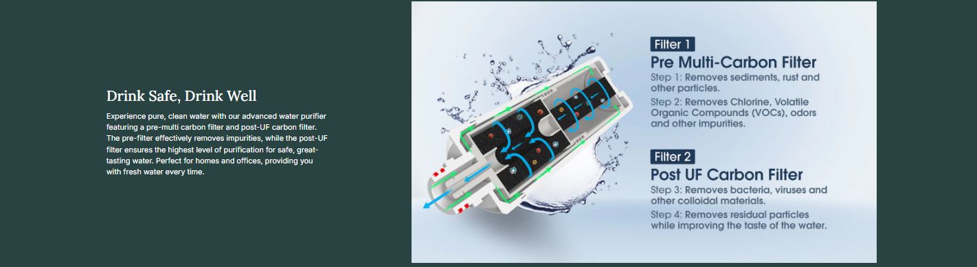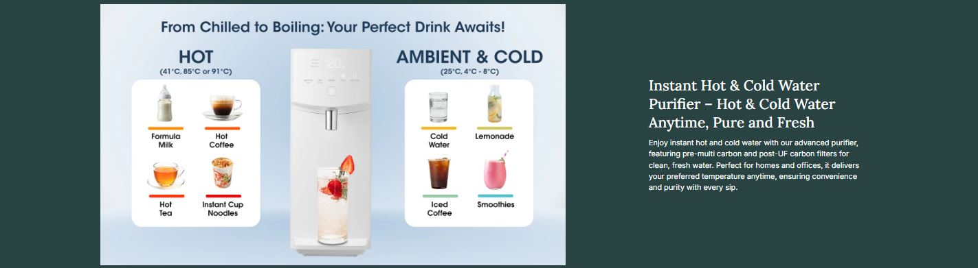 The EuropAce EWP9120DWH is a premium tankless hot & cold water purifier designed for instant convenience and modern style. Made in Korea, it delivers refrigerator-cold water or over 90°C hot water on demand—perfect for coffee, tea, or refreshing drinks. With leak-proof technology and energy-saving design, it ensures safe, efficient operation while providing high-quality purified water for your home or office. Its compact, tankless build minimizes bacteria growth and maintenance needs.
