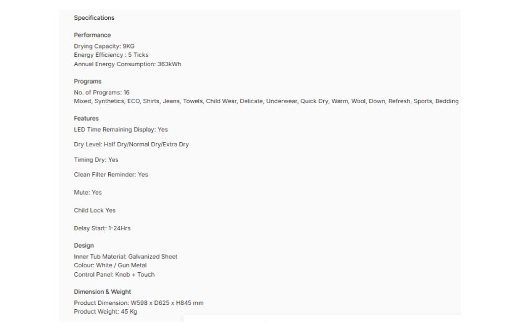 The EuropAce EDY8900EWH offers excellent value with modern features, quiet operation, and efficient drying. It’s a great fit for households looking for an affordable yet capable heat pump dryer.